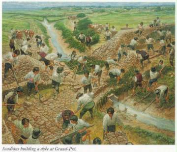 vallée les fermiers acadiens, les uns en canot, les autres sur leurs