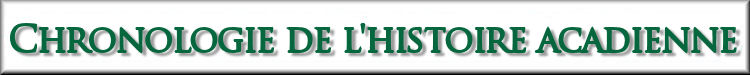 1676: La première école de l'Acadie est fondée à Fort-Royal par l'abbé Louis Petite, un diplômé du séminaire de Laval au Québec. Petite devient le premier prêtre à établir un ministère à plein temps dans la colonie. 1678: Dans les deux ans, d'autres noms acadiens: Chaisson, Cottard, Hache, Lagacé (Lagasse), Leger, Mercier, Aubin, Mignault, Mirande, Perthuis (Pertuit). 1679: Encore un autre recensement indique 515 personnes dans la colonie, une augmentation remarquable de 25 pour cent au cours de la dernière décennie. 1681: La Salle, un jésuite anciens du séminaire de Québec part à la descente du fleuve Mississippi, du Québec. 1682: En avril, il découvre le Mississippi terminus du Golfe, et il nomme le territoire environnant la Louisiane en l'honneur de son roi. 1709: Les coupures de guerre continentale au large de la colonie de la France. Quelque trente-cinq vaisseaux anglais sont pris par des corsaires acadiens. 1710: Francis Nicholson, lieutenant-gouverneur des colonies de Maryland et la Virginie (gouverneur de la Virginie en 1698), couve la présence française et décide d'envoyer un groupe d'attaque pour saisir la colonie acadienne. Nicholson, avec l'aide de New York d'affaires Samuel Vetch, arrive à Boston le 15 Juillet avec six navires de guerre et met en route pour Fort Royal sur Septembre 18. Le Septembre 24, il arrive dans le port de Fort-Royal avec 3.400 hommes, pour s'opposer gouverneur Subercase, mal en infériorité numérique, avec seulement 300 hommes, dans un fort de se détériorer. Subercase tend vaillamment jusqu'à Octobre 16 et remporte des conditions honorables de la capitulation. Vetch devient gouverneur, et le village est nommé Annapolis Royal en l'honneur de l'Angleterre de la reine Anne. Années de transition: l'Acadie sous l'Empire britannique 1713: Le traité d'Utrecht établit le contrôle anglais sur la plupart de la péninsule de la Nouvelle-Écosse, à l'exclusion Ile Royale (île du Cap Breton) et de l'Ile Saint-Jean (Île du Prince Édouard). Contrôle du Nouveau-Brunswick demeure en litige, avec le fort français de Beauséjour établie sur la côte nord de la rivière Missaguash et les Anglais du fort Lawrence sur la rive sud, la définition de ce qui allait devenir la ligne de démarcation entre les deux provinces. raids périodiques et la guerre des Indiens de l'années 1720 serait troubler la tranquillité, mais les Acadiens résolument resté "neutre", conformément aux termes du traité de refuser d'aider une ou l'autre candidat européen pour le contrôle administratif de leur société. Estimation de la population à cette date: 2300 2500. 1714: La reine Anne meurt, ce qui porte I George sur le trône. Gouverneur Vetch rédige un rapport préconisant l'expulsion comme la solution à ce qu'il considère comme un problème sans issue politique. Major Paul Mascareignes - un officier huguenot de la garnison anglaise, qui deviendra plus tard lieutenant-gouverneur de la colonie a pour mission d'autoriser l'élection de quatre "députés" de l'zones de peuplement majeurs pour gérer les communications entre les gouvernants et les gouvernés. En 1748, il y aura quarante-huit députés, dont le leadership capacités permettre aux Acadiens dispersés pour survivre à l'Travail à venir. La première colonie européenne permanente en Louisiane: Natchitoches. 1715: Le fort français de Louisbourg, sur l'Ile Royale a maintenant une population de 700, et des efforts accrus de fortification commencer. Louis XV monte sur le trône français. 1717: le colonel Richard Philipps succède au scandale monté Nicholson Vetch régime en tant que gouverneur, et nomme le capitaine John Doucett huguenot comme son lieutenant-gouverneur en 1726. Doucett reste à Annapolis Royal pour exécuter la colonie quand Philipps se déplace d'abord le village de pêcheurs anglophones à Canso, en 1721, puis l'Angleterre en 1723. A Paris, la compagnie de John Law de l'Ouest est fondée à coloniser la Louisiane avec des immigrants allemands. 1718: La Nouvelle-Orléans est réglée. Population au Juin: 68. Le riz est la première mise en Louisiane. 1719: Un aventurier soldat nommé François Semar de Belle-Isle est coincés après un naufrage, et forcés de vivre parmi les Indiens Attakapas ouest de la rivière Atchafalaya, en Louisiane. Belle-Isle accuse faussement de cannibalisme, ce qui décourage efficacement le règlement de leurs terres isolées jusqu'à ce que le immigrations acadienne de la dernière partie du siècle exigent plus d'espace pour l'expansion. 1720: Bastion Le soi-disant roi à Louisbourg est terminée. Louisiane population de cette année: 6.000. 1722: Quatre ans de guerres indiennes commencent en Acadie. 1724, le premier Code Noir est adopté en Louisiane, exigeant, entre autres choses, que tous les esclaves soient baptisés catholiques. 1725: D'une manière typique de confusion administrative coloniale, le major Lawrence Armstrong est nommé à un lieutenant-gouverneur en même temps que Doucett, et reste en poste jusqu'en 1739. 1726: À la fin des guerres indiennes, les Acadiens d'Annapolis Royal sont convoqués au fort, pour être administré le serment d'allégeance à la couronne d'Angleterre. Ils exigent qu'une clause insérée les exemptant de porter les armes, et des lettres de cette période de confirmer que la demande a été écrit au crayon sur la copie en français si elle ne figure pas sur l'une des versions en langue anglaise qui sont encore les seuls documents «officiels» pour survivre. 1727: George, je meurt et est remplacé par George 11, qui déteste passionnément catholiques. Les résidents d'Annapolis Royal, après avoir entendu de son ascendant, conférer avec l'abbé Breslay et tienne une réunion de protestation pour demander que leur indépendance religieuse continuent d'être protégées selon les termes du traité d'Utrecht, que les prêtres français continuent d'être envoyés à eux, et qu'ils ne soient p