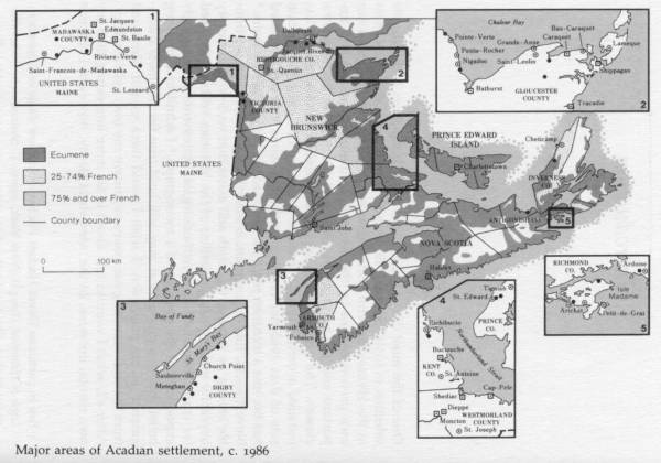 courtesy of Naomi E.S. Griffiths, "The Contexts of Acadian History, 1686-1785",